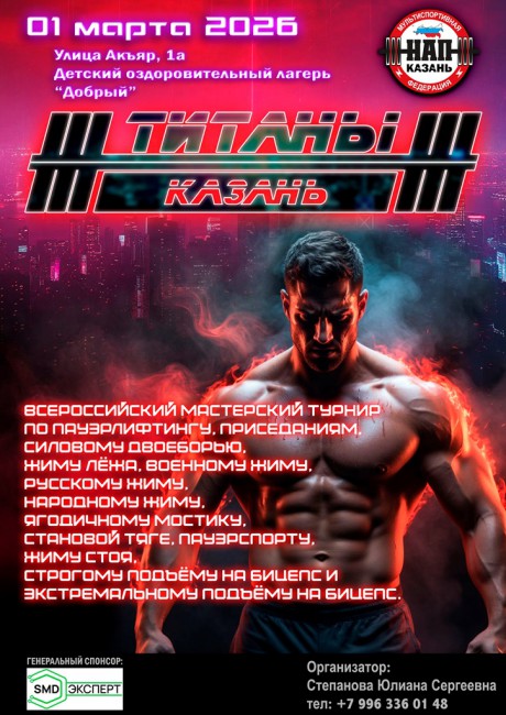 Открытый мастерский турнир по силовым видам спорта "ТИТАНЫ - II", 28 февраля - 1 марта 2026 года, город Казань, Республика Татарстан