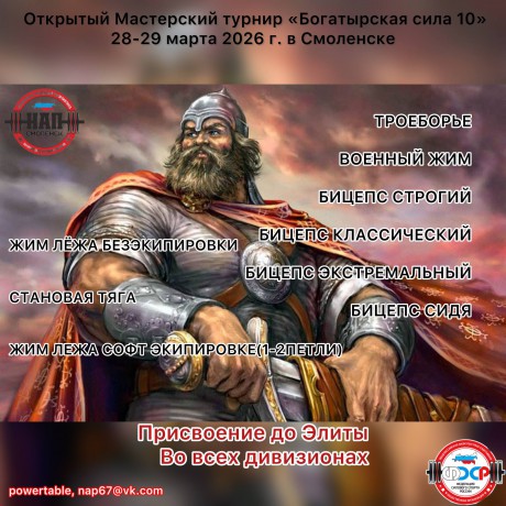 Открытый мастерский жимовой турнир Запада России "БОГАТЫРСКАЯ СИЛА - X", 28-29 марта 2026 года, город Смоленск