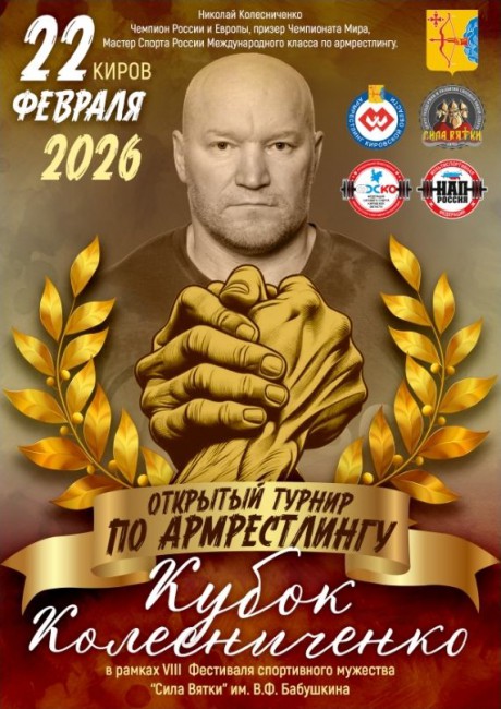 Открытый турнир "КУБОК КОЛЕСНИЧЕНКО" по армрестлингу НАП, 22 февраля 2026 года, город Киров